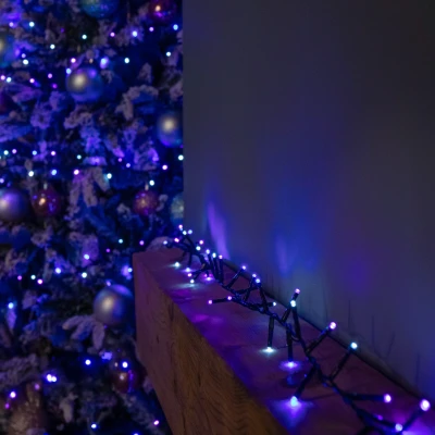 Add a touch of enchantment to your festive decor with this Set of 240 LED Multi-Action String Lights. Designed to deliver maximum sparkle and coverage with minimal effort. This set of TreeBrights creates a magical winter wonderland effect both indoors and outdoors. Whether used for wrapping around a Christmas tree, outlining a porch, decorating a garden shrub, or creating a festive feature indoors, these string lights deliver dazzling a performance.. Featuring 240 bright LEDs in a mix of enchanting colours with blue, purple and white, these lights are spread evenly over 6 metres of lit length, there are multiple light effects to choose, including combination, in waves, sequential, slo-glo, chasing / flash, slow fade, twinkle /flash, and steady on. The different functions gives the flexibility to create different moods, from calm and cosy to festive and dynamic.. With a built timer function of 8 hours on 16 hours off, helping you save energy and hassle. Perfect for setting once and letting it run all season long. The lights sit on a dark green lead cable and are mains powered with a 5 meter lead from plug to the first light giving a total length of 11 meters.. Suitable for indoor and outdoor use (transformer must remain indoors). Product Specifications. 240 Blue, Purple and White Multi-Action LEDs. Lit Length: 6m. Total Length: 11m. Mains Powered with 5m Power Cable. Timer Function 8 hours on 16 hours off