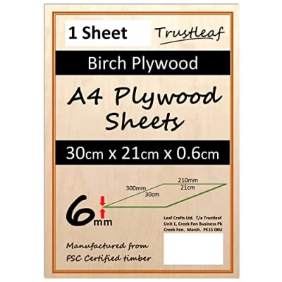 6mm Birch Plywood A4 300x210x (Pack of 1) Laserable Low Fume E1 Glue Ply.