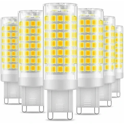 General description These 6pcs G9 LED bulbs are designed to provide high-quality lighting at an affordable price. Made with quality LED chips, a ceramic base, and a protective PC cover, these bulbs ensure durability and efficiency. They are an excellent replacement for traditional halogen G9 bulbs, offering significant energy savings. Technical specifications Power: 7W Luminous flux: 430LM Color temperature: 6000K (Cool White) Voltage: 220-240V Color Rendering Index (CRI): 85 Non-dimmable Energy class: D Usage Ideal for wall sconces, ceiling lights, table lamps, and pendant lights. Perfect for various applications due to its standard G9 base and compact size.
