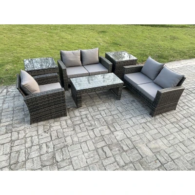 6pcs Rattan Outdoor Garden Furniture Sofa Set with Coffee Table 2 Side Tables Dark Grey Mixed Fimous