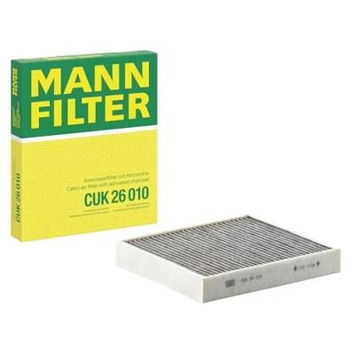 MANN-FILTER Cabin Air Filter CUK 26 010 / Dimensions (mm): A = 254; B = 224; H = 36 / Premium Filter in Original Equipment Quality High-quality MANN-FILTER cabin filters with active carbon - nearly 100% protection from particles like pollen, diesel soot & tyre abrasion / Additional protection from harmful gases & unpleasant odour The trated highly-effective activated carbon gives protection against harmful gases such as ozone, nitrogen oxide or sulphur dioxide and eliminates unpleasant odours during the entire service interval Looking to find the correct filter? Select: brand, model, vehicle type, and engine type above to see which one fits your vehicle MANN+HUMMEL complies with REACH-regulation + supports the goal of Improved health and safety through the design, manufacturing, usage, disposal and recycling of our products