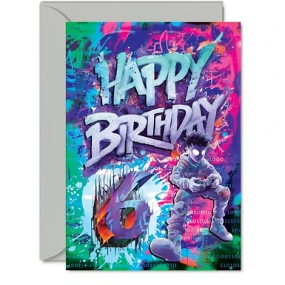 6th Birthday Cards for Boys Girls Epic Gamer Happy Card 6 Year Old Boy Girl Grandson Cousin Son Niece, A5 Bday Greeting