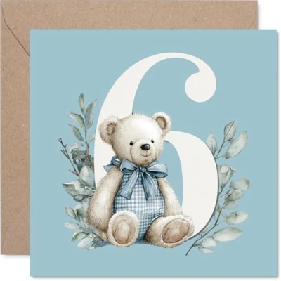 6th Birthday Cards for Boys Number Bears Happy Card 6 Year Old Boy Grandson Godson Step Son Son, 145mm Bday Greeting