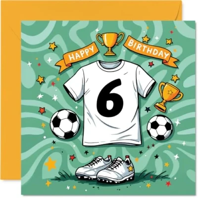 6th Birthday Cards for Girls Boys Football Shirt Happy Card 6 Year Old Girl Boy Grandson Cousin Son Niece, 145mm Bday Greeting