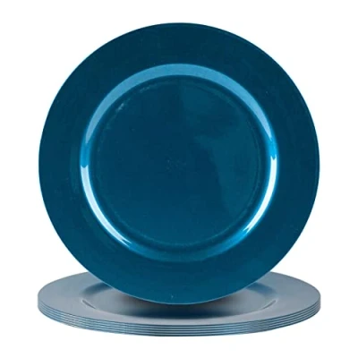 6x Blue 33cm Metallic Melamine Charger Plates By Argon Tableware
