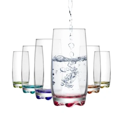 6x Multicolour 390ml Adora Highball Glasses Tall Hi Ball Glass Water Gin Juice Cocktail Drinking Glassware Tumblers Set By LAV
