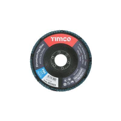 General description A premium, long life and heavy duty zirconium flap disc designed for consistent and rapid performance. It is suitable for grinding, finishing, removing paint, and weld dressing, making it ideal for both flat and curved surfaces. Technical specifications Type: Zirconium Shape: Conical Type 29 Grit: P80 Dimensions: 115 mm x 22.23 mm