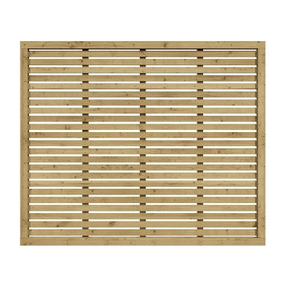 General description Rowlinson Ledbury Screens are a modern and attractive way to screen off parts of your garden, featuring heavy-duty framing and a contemporary open slatted design. Technical specifications Framing dimensions: 45x55mm Slat dimensions: 45x15mm Height: 1500mm Width: 1800mm Depth: 40mm Other information Pressure treated against rot Natural timber finish