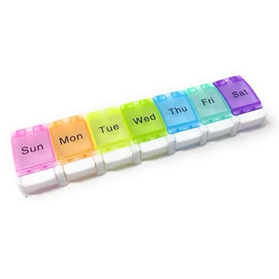 7 Day Pill Organiser and Dispenser with Coloured Lids