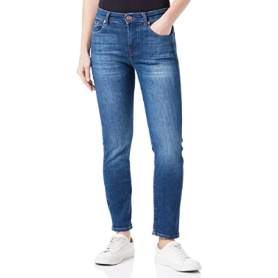 7 For All Mankind Women's Relaxed Skinny Slim Illusion Jeans, Dark Blue, 31