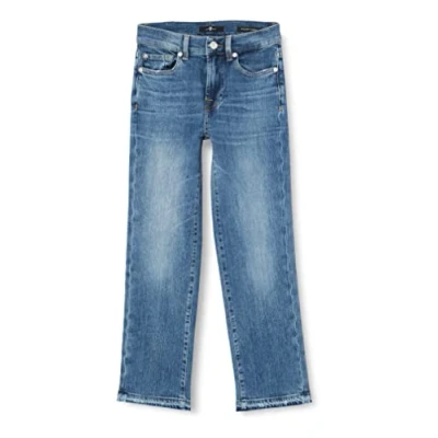 7 For All Mankind Women's The Straight Crop Slim Illusion Stride with Let Down Hem Jeans, Light Blue, 24W x 24L