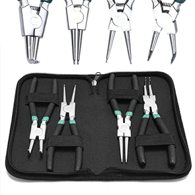 7" inch Circlip Pliers Set 4pcs Heavy Duty Internal/External Snap Ring C Clip Kit for Remover Retaining and Remove Hoses, Storage Case Included