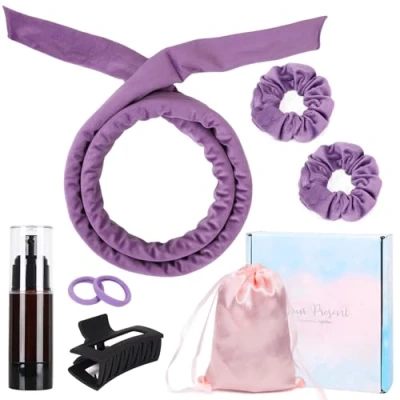 7 PCS Heatless Curlers Headband Set, Velour Curls, Soft and Comfortable Hair Curlers, No Heat for DIY (Purple, 7Pcs)