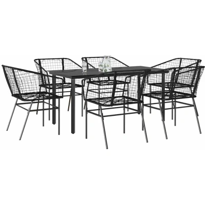 7 Piece Garden Dining Set Black Poly Rattan Glass Vidaxl