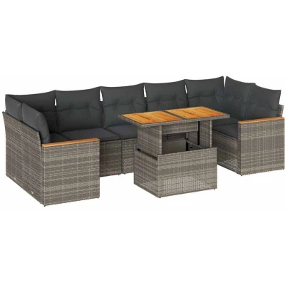 7 Piece Garden Sofa Set with Cushions Grey Poly Rattan Acacia Vidaxl