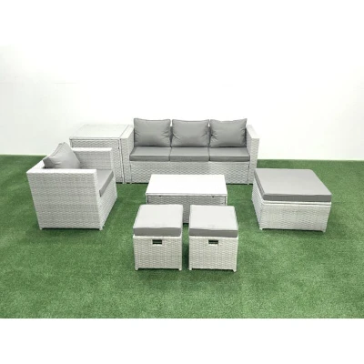7 Pieces Rattan Garden Furniture Set Outdoor Sofa Chair Coffee Table with Side 3 Footstools Light Grey Mixed Fimous