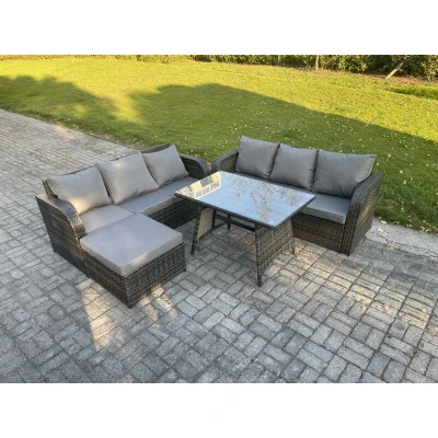 7 Seater Garden Furniture Sofa Set Rectangular Dining Table Big Footstool Indoor Outdoor Rattan Dark Grey Mixed Fimous