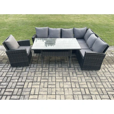 7 Seater Garden Rattan Furniture Corner Sofa Dining Table Chair Set with Temper Glass and Cushions Indoor Outdoor Lounge Fimous