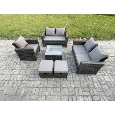 7 Seater Outdoor Rattan Garden Furniture Set Conservatory Patio Sofa Coffee Table with Chair 2 Small Footstools Dark Grey Mixed Fimous