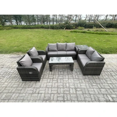 7 Seater Outdoor Rattan Garden Furniture Set Patio Lounge Sofa with Rectangular Coffee Table Side Dark Grey Mixed Fimous
