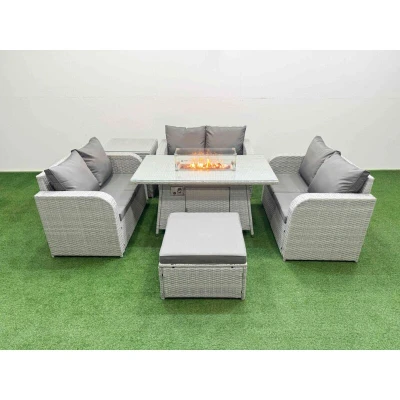 7 Seater pe Wicker Rattan Furniture Sofa Sets with Firepit Dining Table 2 Love Big Footstool Side Light Grey Fimous