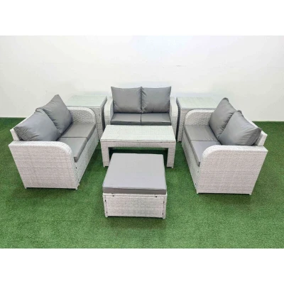 7 Seater pe Wicker Rattan Furniture Sofa Sets with Oblong Coffee Table 2 Love Big Footstool Side Light Grey Fimous
