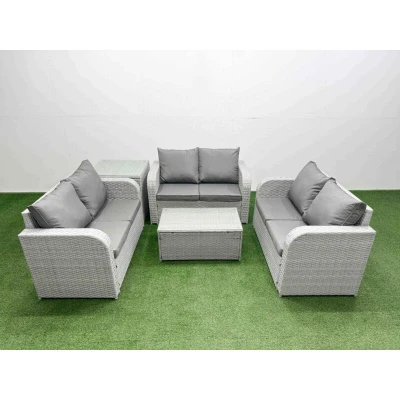 7 Seater pe Wicker Rattan Furniture Sofa Sets with Rectangular Coffee Table 2 Love Big Footstool Light Grey Fimous