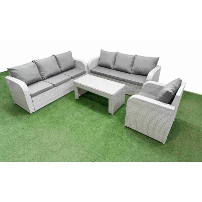 7 Seater Poly Rattan Outdoor Garden Furniture Oblong Coffee Table Sofa Set Patio 3 Reclining Chair Light Grey Fimous