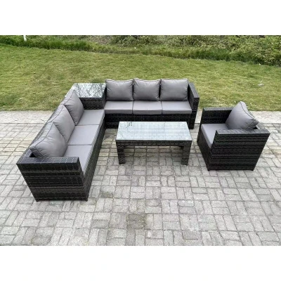 7 Seater Rattan Corner Sofa Set With Square Side Table And Oblong Rectangular Coffee Tea Arm Chair Dark Grey Mixed Fimous