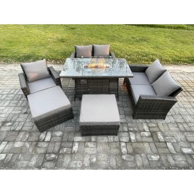 7 Seater Rattan Garden Furniture Set Outdoor Lounge Sofa Chair Gas Fire Pit Dining Table With 2 Big Footstool Double Seat Armchiar Fimous