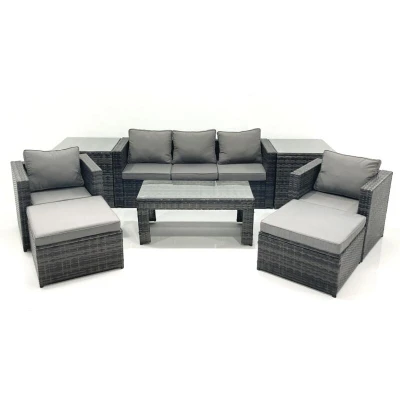 7 Seater Rattan Garden Furniture Set Outdoor Lounger Sofa with Coffee Table 2 Armchair Big Footstools Side Tables Dark Grey Mixed Fimous