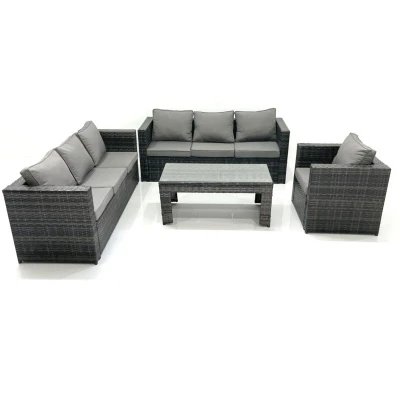 7 Seater Rattan Garden Furniture Set Outdoor Lounger Sofa with Coffee Table Armchair Dark Grey Mixed Fimous