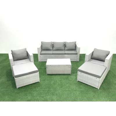 7 Seater Rattan Garden Furniture Set with 3 Sofa 2 Chair Rectangular Coffee Table Big Footstools Light Grey Mixed Fimous