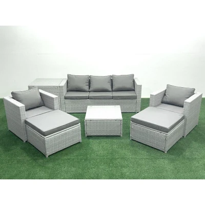 7 Seater Rattan Garden Furniture Set with 3 Sofa 2 Chair Square Coffee Table Big Footstools Side Light Grey Mixed Fimous
