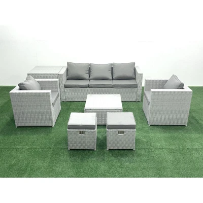 7 Seater Rattan Garden Furniture Set with 3 Sofa 2 Chair Square Coffee Table Small Footstools Side Light Grey Mixed Fimous