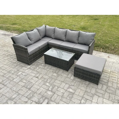 7 Seater Rattan Lounge Corner Sofa Set Wicker pe Outdoor Garden Furniture with Coffee Table Big Footstool Dark Grey Mixed Fimous