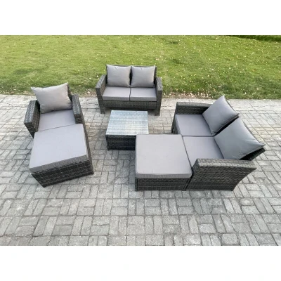 7 Seater Rattan Outdoor Garden Furniture Sofa Set Table & Chairs with 2 Big Footstool Dark Grey Mixed Fimous