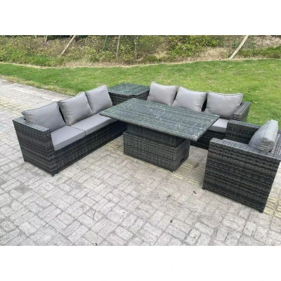 7 Seater Wicker pe Garden Furniture Rattan Sofa Set Outdoor Adjustable Rising Lifting Dining Table with Armchair Side Dark Grey Mixed