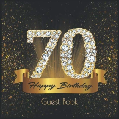 70 Happy Birthday: Guest Book I Festive Shiny Diamond Gold Black Binding 90 Guests Written Wishes from Loved Ones Keepsake Party Supplies for Women and Men Gift Log 70th Birthday Idea