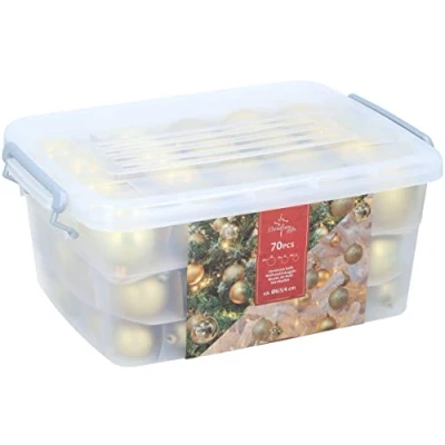 70 Pack Christmas Baubles in Plastic Storage Box Xmas Tree Ball Hanging Ornaments Decorations (Gold)