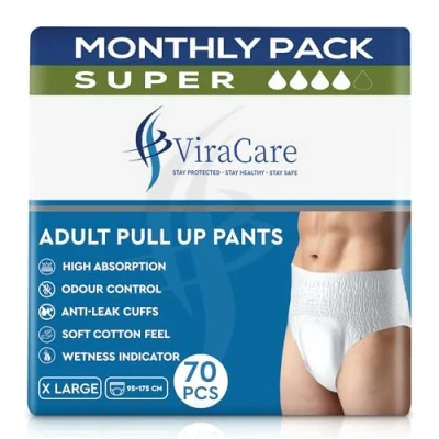 LOCK ODOUR & COMFORTABLE: Our pull-up pants provide comfort with breathable and soft materials, keeping your skin clean, dry, and healthy. They also quickly lock in odours. SOFT & BREATHABLE: Designed for ultimate comfort, our adult pull-up pants feature a soft and breathable cotton topsheet. The full-rise soft-stretch waistband ensures a snug fit. ANTI-LEAKS GUARD:Our pants include anti-leak guards to protect against leaks. With a comfortable fit and a cotton-enhanced topsheet that