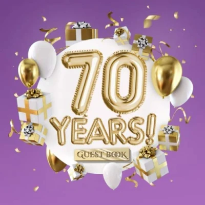 70 Years Guest Book: Great for 70th Birthday Gifts & Decorations Purple Party Decor, Gift Idea men and women Violet ... pages Messages Photos of Guests