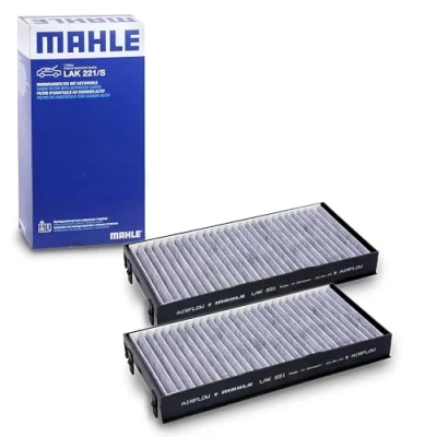 MAHLE cabin air filter LAK 221/S, set of two // carbon activated pollen filter // Dimensions (mm) L: 0, W: 0, H: 34 // Premium filter in OE quality High quality cabin filter reliably protects against pollen, soot and fine particulates such as tire debris and brake dust Additional carbon activated layer eliminates harmful gases such as nitrogen (NOx), ozone and sulfur (SO2) Protects air conditioning system and blower motor from premature wear Replace annually or every 10,000 miles