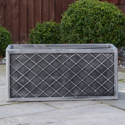 Enhance your planting displays with a perfect balance of style and practicality with this 70cm Lazio Plastic Pewter Effect Grey Planter. Designed to combine contemporary aesthetics with everyday practicality, this planter is an excellent choice for anyone looking to elevate their indoor or outdoor space with minimal effort.. Crafted from durable, recycled plastic, the planter benefits from a lightweight design, making it easy to position, move, and refresh your layout whenever needed. Despite its light construction, it is built to last, offering excellent resilience against everyday wear and tear. The frost-resistant material ensures reliable performance all year round.. Finished with a hand-painted pewter effect, this planter delivers the visual appeal of a more premium material while retaining the practicality and affordability of plastic. Its sleek silhouette and refined pewter-grey finish make it a standout piece that enhances both modern and traditional settings alike.. Suitable for indoor and outdoor use.. Product Specifications. Height: 33cm Length: 70cm Width: 30cm