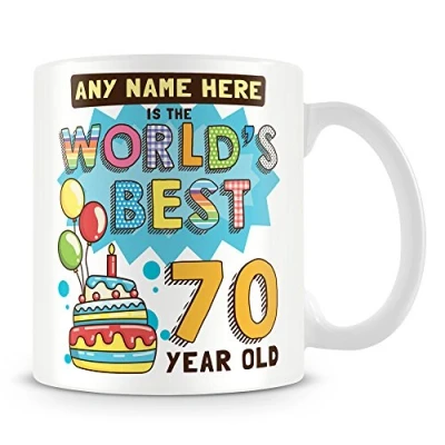 70th Birthday Gift for Men Personalised Mug/Cup Add Name Worlds Best Design Blue