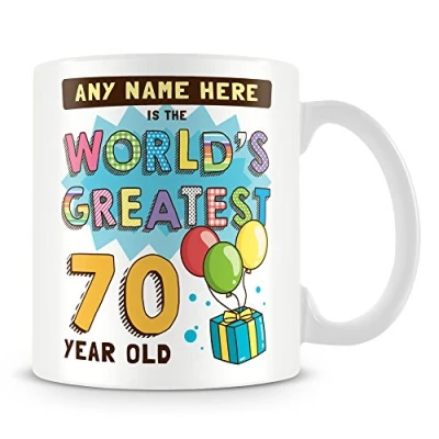 70th Birthday Gift for Men Personalised Mug/Cup Add Name Worlds Greatest Design Blue