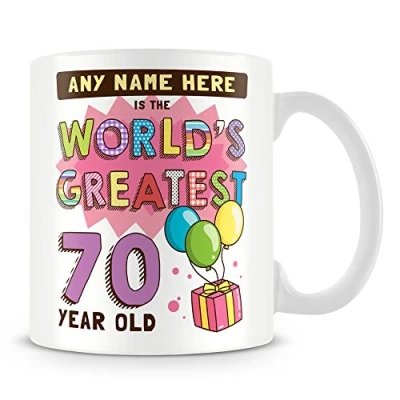 70th Birthday Gift for Women Personalised Mug/Cup Add Name Worlds Greatest Design Pink