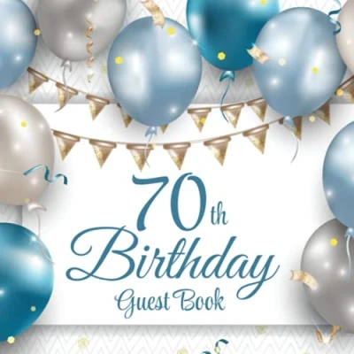 70th Birthday Guest Book: Blue & Silver Balloons Party Sign In Message Book Gift Log Memory Keepsake