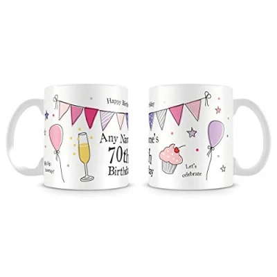 70th Birthday Present for Women Personalised Mug/Cup Add Name Party Design Pink