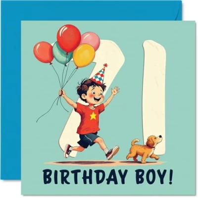 71st Birthday Cards for Men Balloon Boy Happy Card 71 Year Old Man Dad Great Uncle Husband Uncle, 145mm Bday Greeting